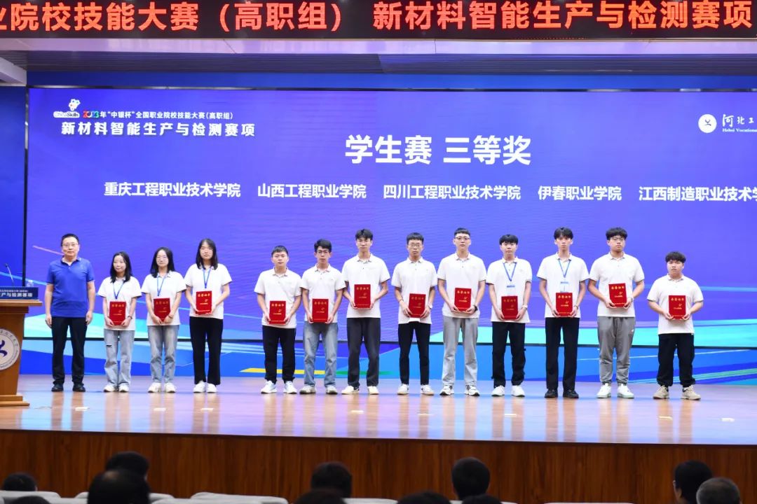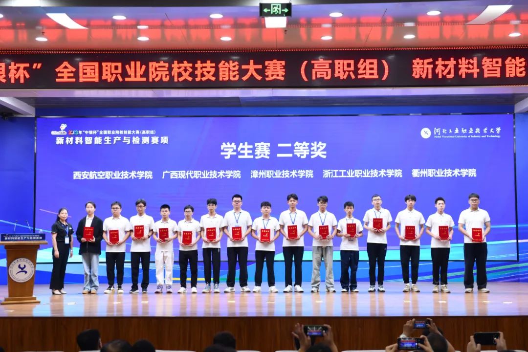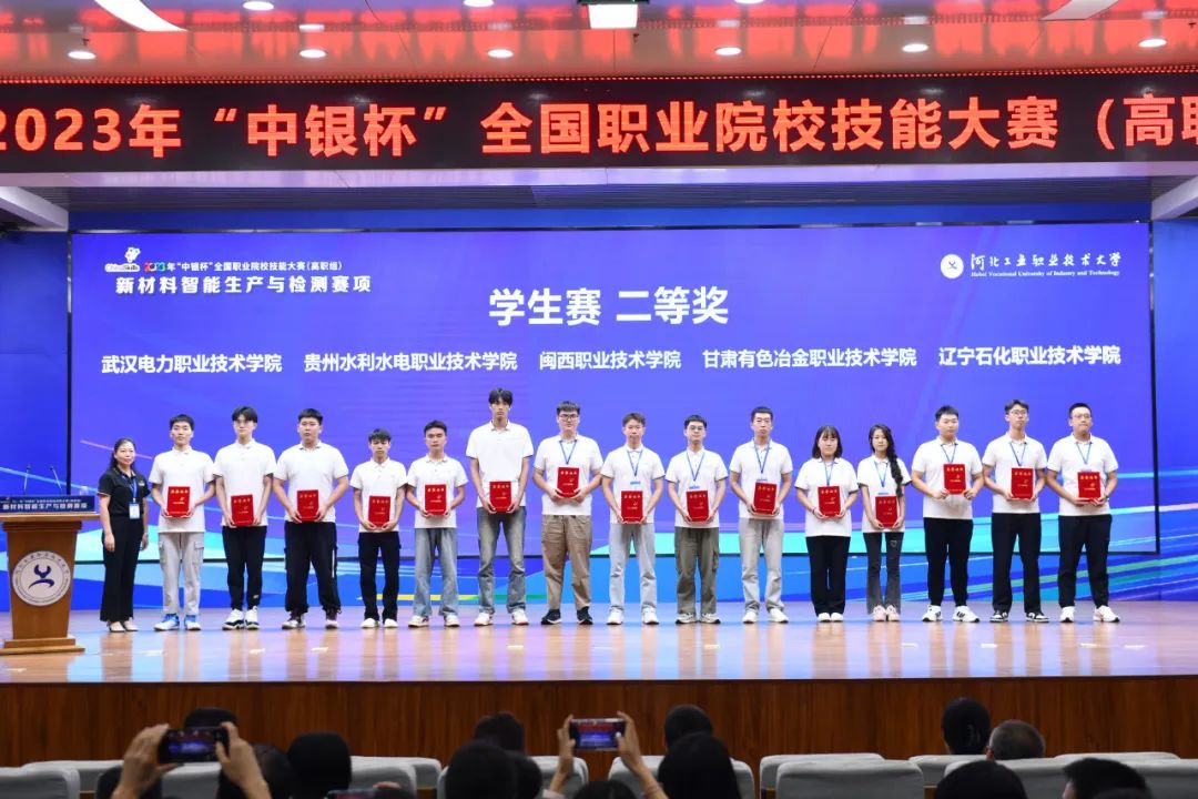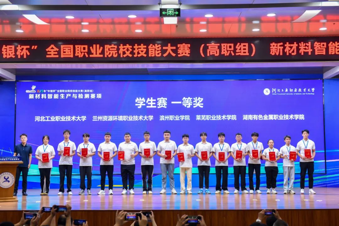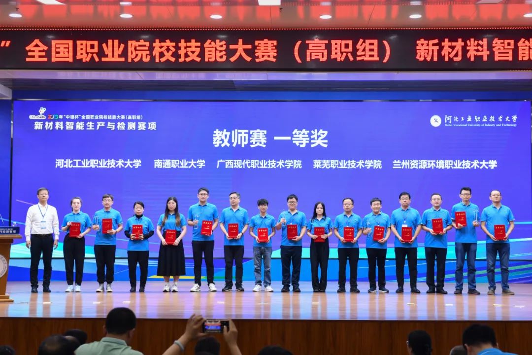 2023年9月22日—25日2023年“中银杯”全国职业院校技能大赛(高职组)新材料智能生产与检测赛项在我校顺利举办。我校材料工程系教师团队高宇宁、赵锦辉、孟娜,学生团队张绅逸、辛根夫、顾凡仪凭借其扎实的专业技能和出色的赛场表现,斩获教师赛和学生赛一等奖2项。