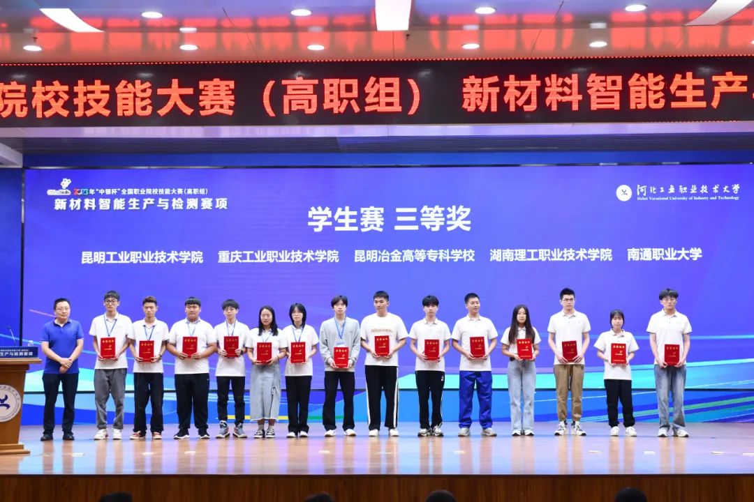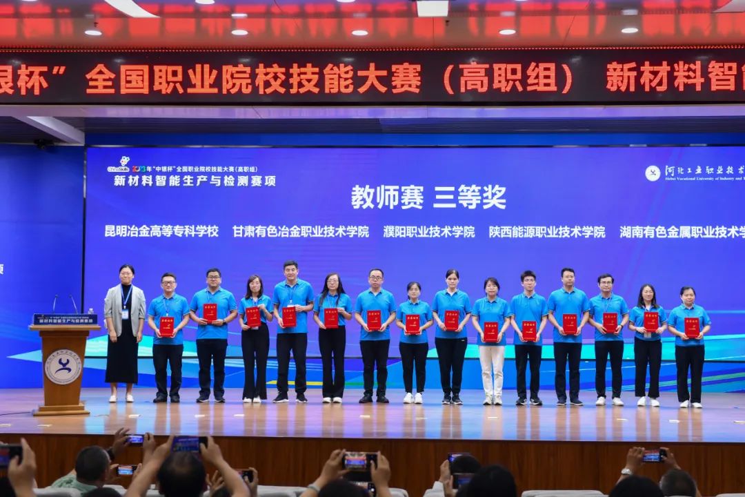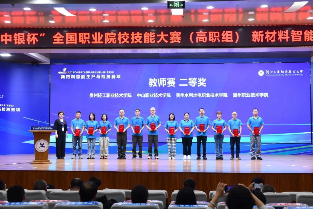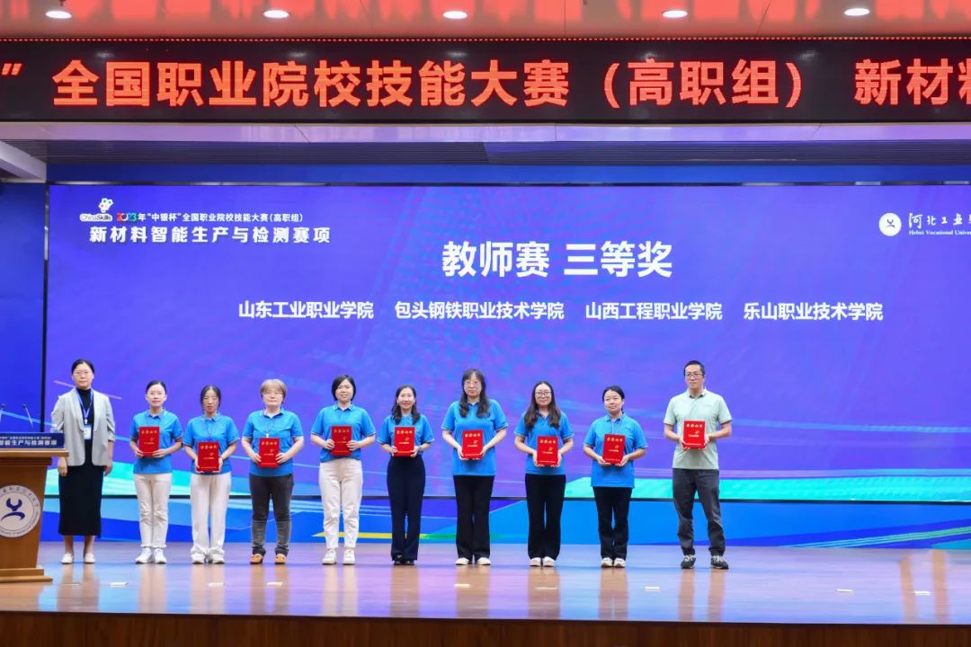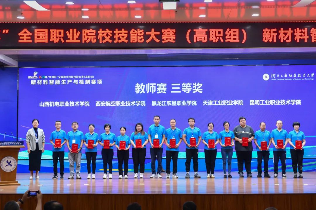2023年9月22日—25日2023年“中银杯”全国职业院校技能大赛(高职组)新材料智能生产与检测赛项在我校顺利举办。我校材料工程系教师团队高宇宁、赵锦辉、孟娜,学生团队张绅逸、辛根夫、顾凡仪凭借其扎实的专业技能和出色的赛场表现,斩获教师赛和学生赛一等奖2项。