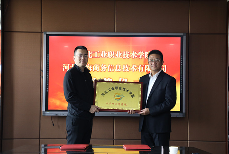 签约仪式上,韩提文副院长对洪彦硕一行的到来表示热烈欢迎,介绍了学院近年来的发展历程以及所取得的建设成就,他表示校企合作项目的推进,为学院和企业搭建了一个相互交流、共同发展的平台,深化校企合作,有助于提高职业教育质量,培养适应现代企业发展需求的技能型人才。随后,洪彦硕主任对基地情况做了介绍,表示跨境电子商务发展迅速,希望可以通过加强产学研合作,共同为河北省培养优质的跨境电商人才。最后,双方进行了合作签约授牌。