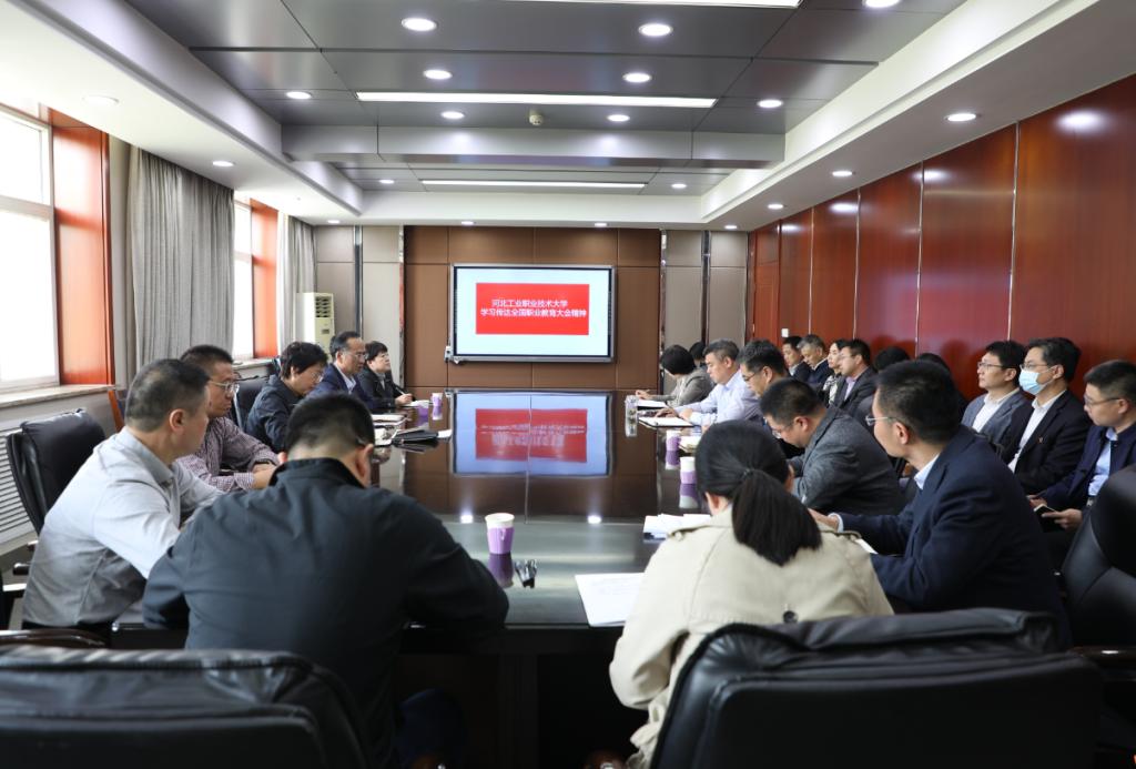 4月14日,完美电竞召开党委扩大会议,党委书记王振杰向各基层党组织书记传达习近平总书记对职业教育工作作出的重要指示和全国职业教育大会精神,并在材料工程系组织召开座谈会,就如何贯彻落实习近平总书记重要指示和全国职业教育大会精神、如何办好本科职业教育进行交流研讨。