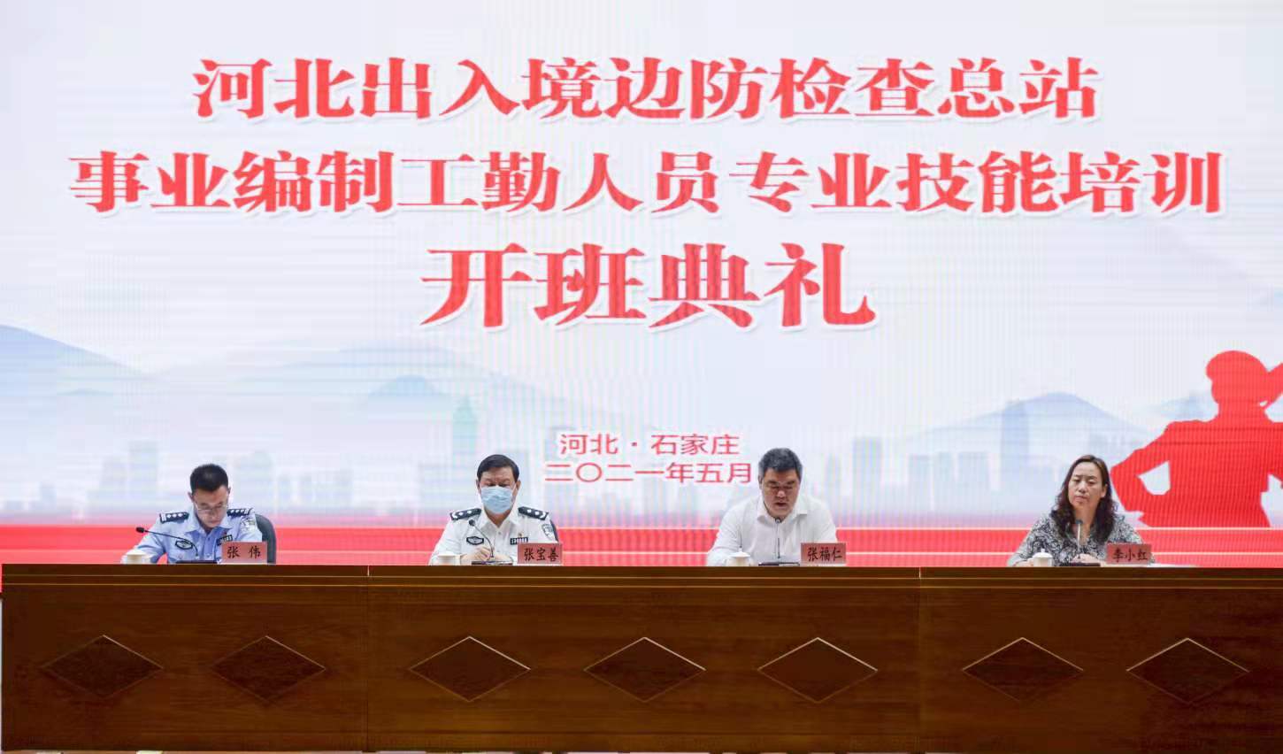 5月14日,河北出入境边检总站事业编工勤人员专业技能培训班开班仪式在完美电竞图文信息中心报告厅举行。我校副校长张福仁、河北出入境边检总站办公室主任张宝善、边检总站办公室副主任张伟、我校成人教育部、智能制造学院和汽车系的负责人出席仪式。