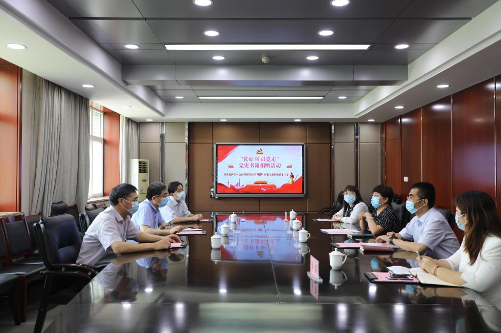 为迎接党的百年华诞,重温中国共产党100年的光辉历程,6月28日上午,我校在红旗校区行政楼406会议室举行“读好书 跟党走“河北省新华书店有限责任公司向我校捐赠党史学习教育图书活动。河北省新华书店党委副书记、总经理韩丽璞,副总经理张文强,连锁公司总经理王新生出席捐赠活动。我校党委副书记付俊薇,党委组织宣传部、图文信息中心相关部门负责人参加活动。