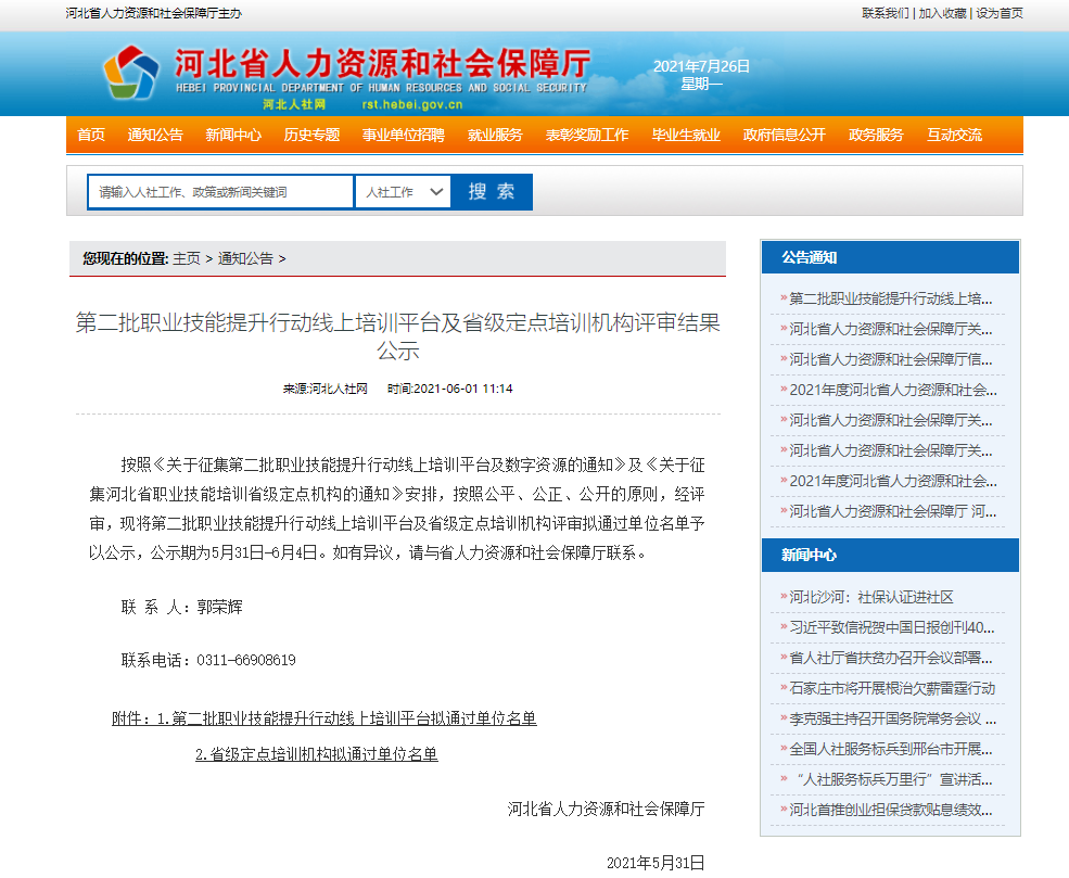 近日,《河北省人力资源和社会保障厅关于公布河北省职业技能培训省级定点机构和第二批职业技能提升行动线上培训平台及数字资源的通知》发布,我校成功入选河北省职业技能培训省级定点机构,智能制造学院开展智能制造岗位技能培训、工业机器人操作与编程岗位技能培训、增材制造与逆向设计岗位技能培训、电气工程技术人员岗位技能培训、设备工程技术人员岗位技能培训、计量检定人员岗位技能培训,6个职业(工种)可在全省范围内开展职业技能培训。