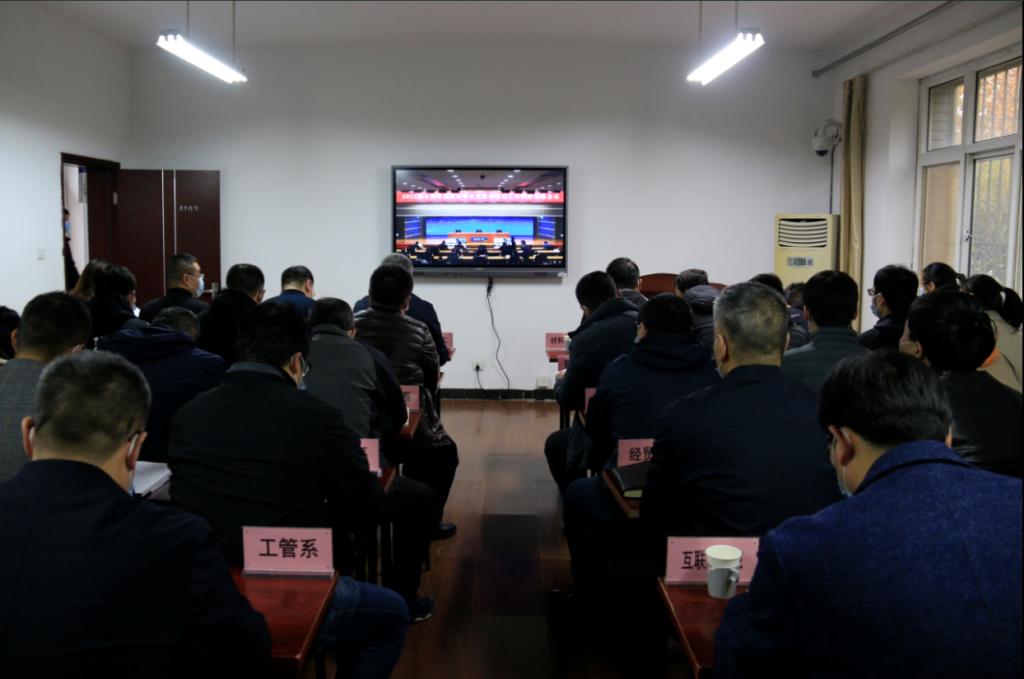 为深入学习贯彻习近平总书记在党的十九届六中全会上的重要讲话精神和会议精神,落实党中央、国务院决策部署,11月19日,由教育部、人力资源社会保障部决定共同召开2022届全国普通高校毕业生就业创业工作网络视频会议,进一步统一思想认识,分析研判形势,对2022届全国普通高校毕业生就业创业工作进行动员部署。我校在办公楼A103室设立分会场,学校副校长张福仁、招生就业指导中心、各系相关部门负责人及全体2022届毕业班辅导员参加会议。