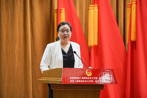 大会在庄严的国歌声中拉开序幕。学校党委副书记付俊薇代表学校党委向本次团学代会的召开表示热烈祝贺,向关心和支持我校共青团工作的省直团工委、省学联、兄弟高校表示衷心的感谢,向全校团员青年致以亲切的问候。付俊薇肯定了我校各级团组织和学生会在思想引领、创新创业、社会实践、志愿服务、文化活动等方面取得的优异成绩,并就接下来的工作提出了三点希望:一是坚定理想信念,永远听党话、跟党走;二是不断深化改革,开拓新思路、新局面;三是唱响青春之歌,练就真功夫、硬本领。省直团工委副书记李颖向我校团学代会的召开表示了热烈的祝贺,肯定了我校各级团组织为促进青年学生全面成长、成才发挥的重要作用,并对高校共青团面临的新形势、新任务、新要求提出了宝贵意见。省学联驻会执行主席张琳肯定了我校学生会服务同学成长成才的业绩,并为加强学生会组织建设提供了新思路。河北交通职业技术学院团委书记苏士杰表达了与我校团委携手并肩、砥砺前行,共同谱写共青团事业新篇章的深厚友谊。