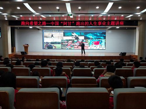 他是国家马拉松健将级运动员、金牌荣誉教练,是荣获了50项国际超级马拉松冠军、打破两项世界纪录的创造者,是登上美国纽约时代广场为数不多的中国籍运动员。他曾连续24小时挑战身体极限的耐力,他也一直积极投身公益活动,帮助脑瘫及癌症患者实现梦想,他是被称为“中国阿甘”的许秀涛。10月31日,我院有幸邀请到“中国阿甘”许秀涛以“跑向希望之路——中国阿甘跑出的人生事业”为主题,为学院600余名师生带来了一次令人振奋鼓舞的讲座。