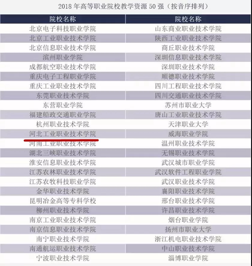 一直以来,河北工业职业技术学院坚持以服务支柱产业转型升级需求为导向、以形成校企命运共同体为重点、以深化复合型高素质技术技能人才培养培训模式改革为抓手,创新产教融合运行模式,将学校建成传承工匠精神、弘扬钢铁文化的技术技能人才培养培训高地。学院本次蝉联“教学资源50强”、“服务贡献50强”,并首次荣获“育人成效50强”殊荣,彰显了学院一直以来坚持内涵建设,突出服务贡献,注重学生发展的重要成效,是学院优质校建设的重要成果,为进一步推进学院高质量发展奠定了坚实基础。