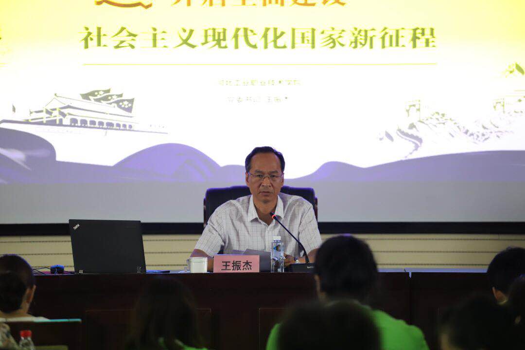 为深入开展庆祝建党98周年系列活动,引导广大党员师生深入学习贯彻习近平新时代中国特色社会主义思想,不忘初心,牢记使命,继承和发扬党的光荣传统,6月25日下午,学院党委书记王振杰在行政楼五楼报告厅讲了题为《开启全面建设社会主义现代化国家新征程》的党课,一百余名党员师生代表参加了学习。