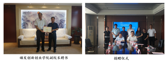 刘士学是河北工业职业技术学院1996级学生,毕业后的他怀揣感恩社会、回报母校的赤诚之心下海创业。20余年来,他一直和母校保持密切联系,持续关注着母校的健康发展。2018年,为反哺母校,刘士学捐赠1000万元,支持学院建设了2500余平米的创新创业协同教育中心项目,分为创意激发中心、项目催生中心、成果转化中心、企业运营中心,结合学院工科专业打造多个创新技术研发中心,让学生做中学创新,玩中学创业,为学院创新创业教育改革做出了巨大贡献。