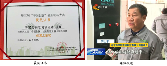减少雾霾,保卫蓝天是每个人的愿望,有一个人一直在为这个梦想孜孜以求,努力奋斗着、实践着。3月28日,河北卫视深度报道了河北工业职业技术学院与河北博厚新能源科技有限公司共同研发的《高密度相变材料储热电采暖设备》,此技术只需将集中供暖系统的燃煤锅炉改造成高密度相变蓄能电加热系统即可,具备系统结构简单、绿色节能、运行安全、全智能恒温、缓解电网峰值等特点,得到了社会各界的广泛关注,赢得了用户的高度认可。该项目在去年中国第三届“创意、创业、创新”大赛中荣获全国“创意之星”奖。目前,已经正式落地实施并在全国推广,2019年预计量产50万台,产值将突破10亿元,为建设绿色中国贡献力量。这个永不止步的环保追梦人就是河北工业职业技术学院96级优秀校友、创新创业学院副院长、河北博厚新能源科技有限公司董事长——刘士学。