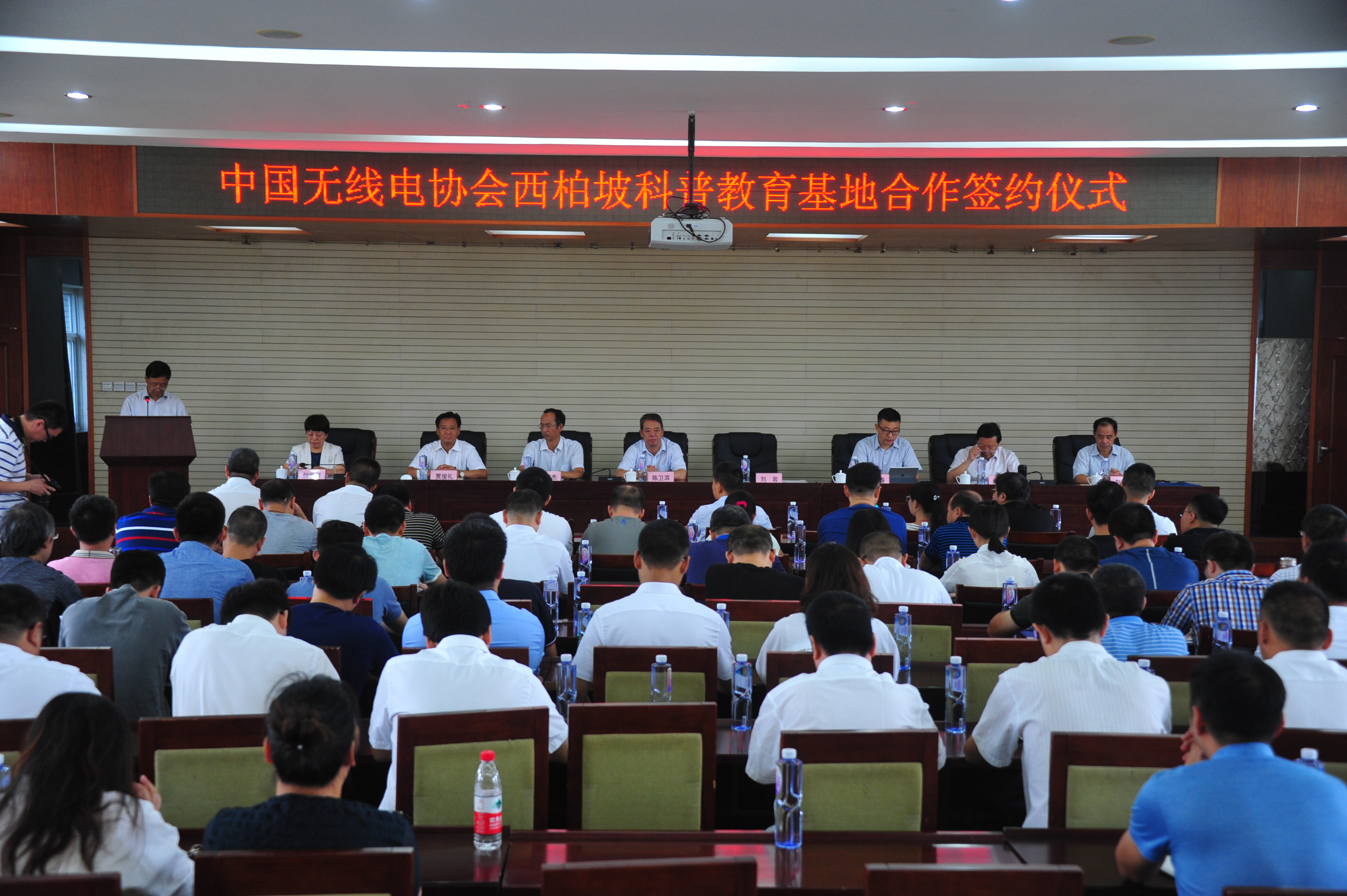 8月30日上午,我院与中国无线电协会共建西柏坡科普教育基地签约仪式在行政楼五楼报告厅举行。中国无线电协会理事长刘岩、国家无线电监测中心党委书记、副主任李景春、中国无线电协会秘书长阚润田、河北省无线电管理局副局长刘爱国及全国20余省份的无线电检测站的领导出席签约仪式。河北省产学研合作研究会副会长陈卫滨作为学院特别邀请嘉宾出席仪式。学院党委书记王振杰、院长贾俊礼、常务副院长付俊薇,副院长韩提文、副院长张福仁以及相关部门的教师代表参加会议,签约仪式由常务副院长付俊薇主持。