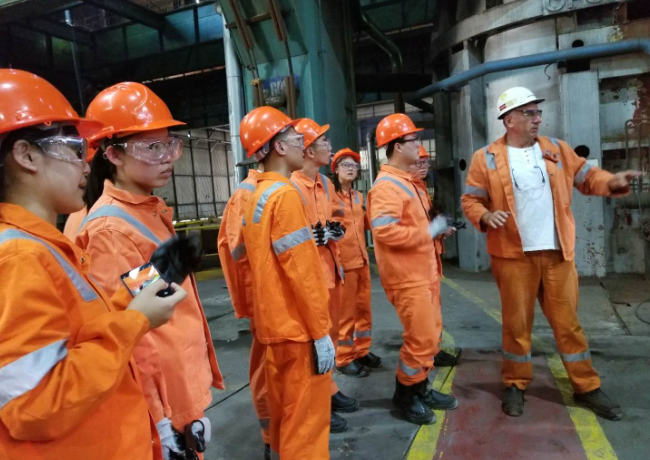 实习团抵达目的地后,受到了河钢集团塞尔维亚有限公司领导和相关人员的热烈欢迎和亲切接待。首日,赛钢工作人员对我院实习学员进行了三级安全教育并详细介绍了河钢赛钢公司的规模、地理位置、设备技术水平、生产经营等基本情况。在随后的实习过程中,我院实习团被分为两组在公司热轧厂、冷轧厂交叉换组实习。为了尽快适应当地语言环境,提高实习效果,一方面我院带队实习教师主动请缨承担了翻译工作,一方面要求学生通过查阅字典、手机在线翻译等方式尽快掌握专业词汇,提升英文交流水平。目前,我院学生已完全适应了赛钢的实习,并能够与公司技术人员用英文进行交流。我院学生较为扎实的专业基础、优良的纪律性和特有的精神风貌受到了赛钢领导与相关人员的高度评价与赞扬。