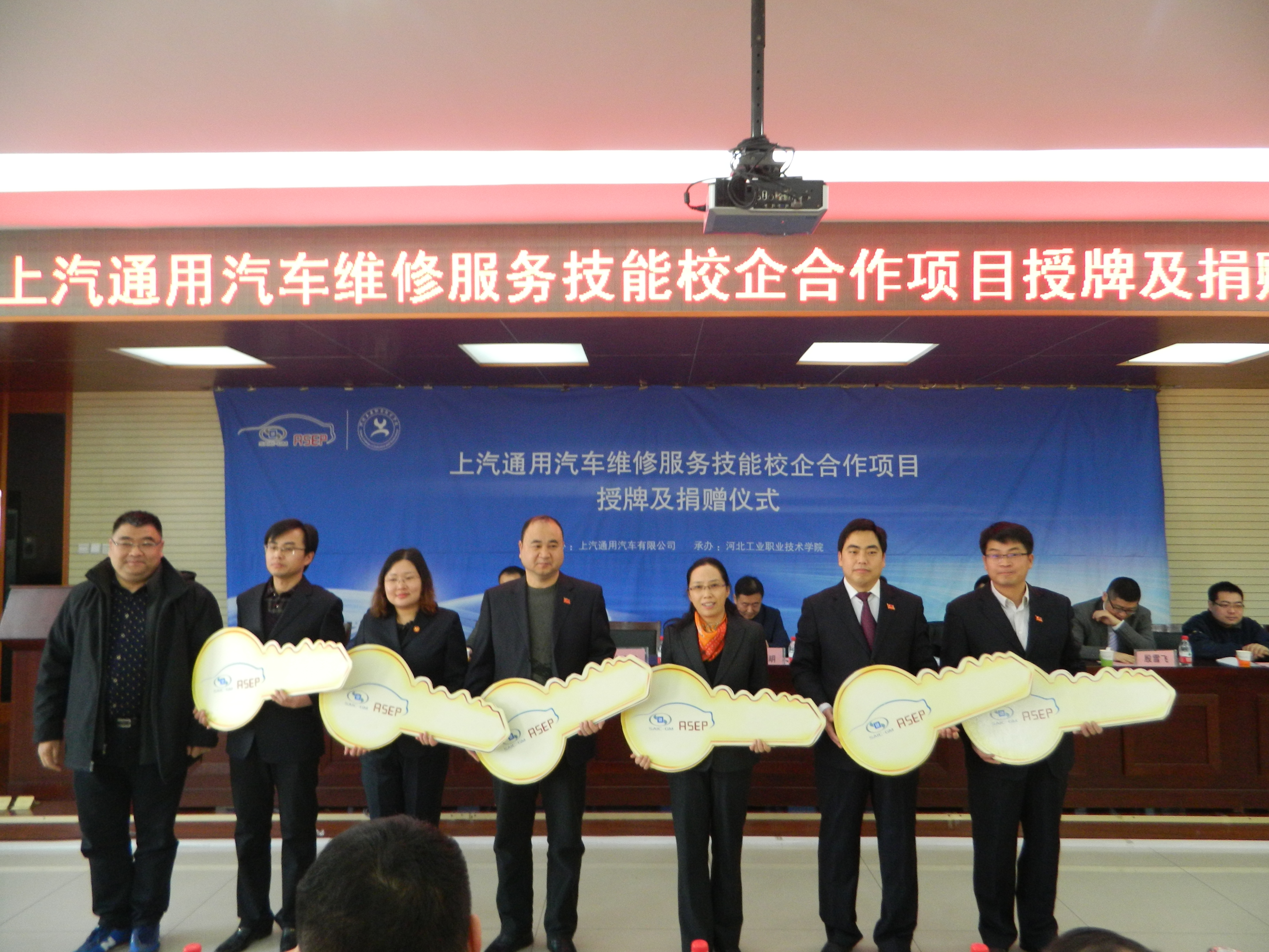 12月23日,上汽通用汽车ASEP项目授牌暨赠车仪式在我院举行。河北省教育厅贾海明副厅长、上汽通用汽车有限公司校企合作项目组白小璎经理、ASEP校企合作项目培训规划主管张霆、殷雪飞、范圣、上汽通用汽车售后服务事业部彭利健经理、别克品牌事业部陈林经理及上汽通用汽车相关品牌经销商代表出席会议。学院王振杰书记、贾俊礼院长、付俊薇副院长、学院相关处室及汽车工程系等100多名师生参加。付俊薇副院长主持仪式。