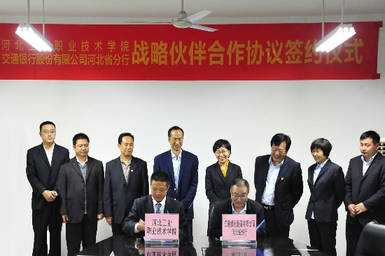 10月27日下午,河北工业职业技术学院与交通银行股份有限公司河北省分行战略伙伴合作签约仪式在我院顺利举行。签约仪式由学院党委书记王振杰主持。副院长韩提文与交通银行河北省分行副行长李祝民代表双方签订了合作协议。党委院长办公室、财务处、信息中心相关负责人出席了签约仪式。