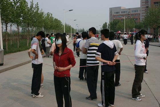 活动中,我院从河北省人力资源开发研究会聘请的两位素质拓展培训师进行了辅导,在培训师的带领下,同学们热情高涨,气氛热烈,在“破冰活动”中学生体验了打破交往隔膜、消除积怨、敞开心扉、乐于交往的必要性;“盲人方阵”活动帮助同学们认识到坚守岗位、合理利用资源的重要性与纪律的严肃性;“打造超级团队之挑战150”活动使同学们深深地认识到“没有完美的个人,只有完美的团队”。