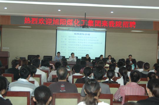 9月18日,旭阳煤化工集团总经理史忠玉一行7人来我院预定2010届毕业生,李军锁副院长热情接待了企业招聘人员。