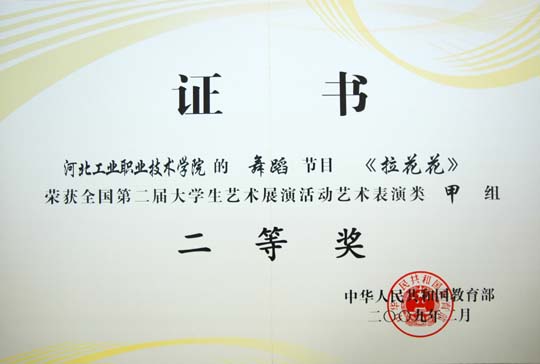 近日,由教育部主办的全国第二届大学生艺术展演活动落下帷幕,我院取得优异成绩。教育部授予我院“全国第二届大学生艺术展演活动优秀组织奖”荣誉称号;由李淑荣、张晓丹指导的舞蹈节目《拉花花》荣获本届艺术展演活动艺术表演类甲组二等奖。