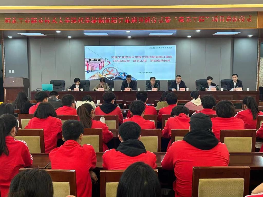 3月8日下午,完美电竞现代学徒制旭阳订单班开班仪式暨旭阳班“鹰系工程”项目启动仪式在办公楼报告厅举行,河北旭阳能源有限公司董事长兼总经理王英其、人力资源部部长刘宏伟,我校副校长张福仁、招生就业指导中心主要负责人以及环境与化学工程系相关老师和订单班全体学生参加仪式。