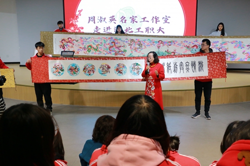 细剪纸鸢乘东风,精雕牡丹媚春红。11月28日下午,红旗校区“一站式”学生社区中心剧场座无虚席,这是蔚县剪纸国家级非遗传承人周淑英老师再次受邀走进我校,将“非遗之美”送到校园,带领师生领略中华优秀传统文化“蔚县剪纸”的魅力。