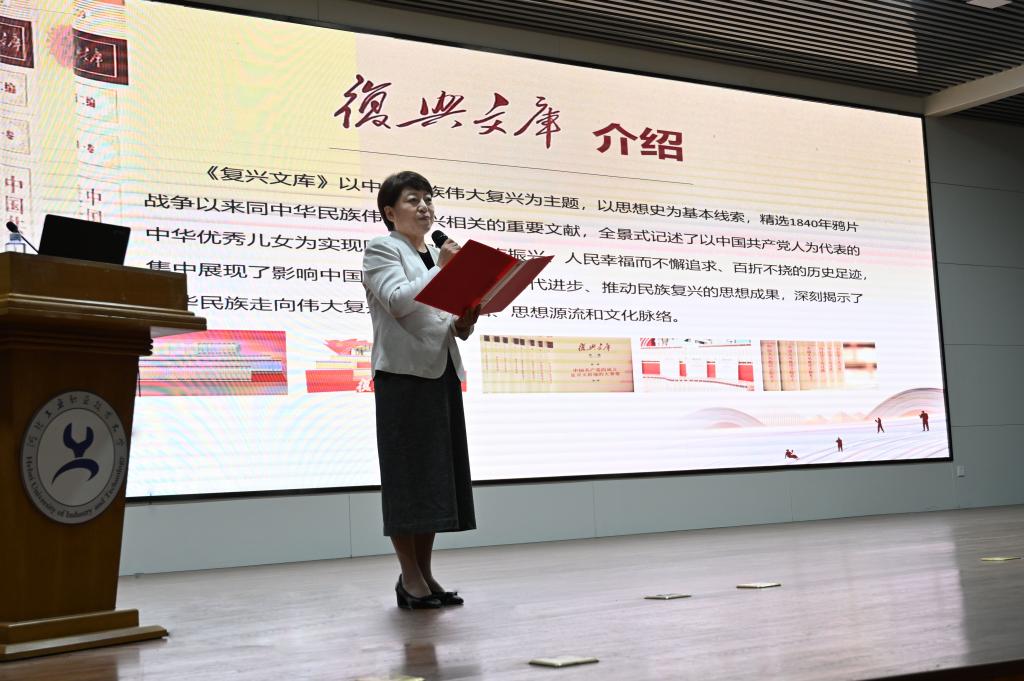 启动仪式上,付俊薇对大型历史文献丛书《复兴文库》进行了导读。她从《复兴文库》的出版背景、出版目的、基本内容、出版意义、学习运用等方面作了详细的介绍,激励师生从坚定历史自信出发,以史为鉴,为中华民族伟大复兴“创造属于我们这一代人的业绩和荣光”。