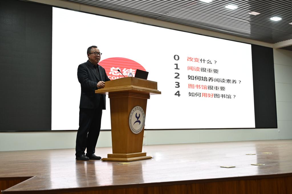 本次启动仪式还邀请了宁波市人民政府突出贡献专家、研究馆员颜务林馆长作《改变,从阅读开始》专题讲座。他从“阅读的重要性”“如何培养阅读素养”以及“如何利用好图书馆”等方面做了全面细致的讲解,引导广大师生把读书作为一种生活方式,养成良好的读书习惯。